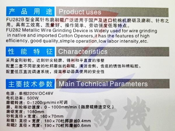 FU282B型金屬針布磨刷輥的產(chǎn)品詳細(xì)介紹: